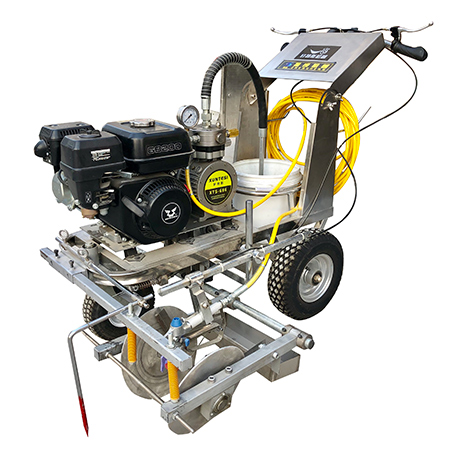 首先說冷噴劃線機,它是一種高壓力等流量型無氣噴塗機,它的設計非常合理,噴槍架導向杆升降設計,可以更爲準确的調節噴塗寬度,劃線均勻,劃線下效果好,施工快捷方便。